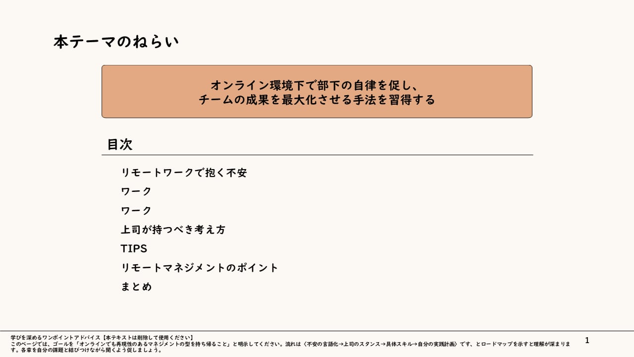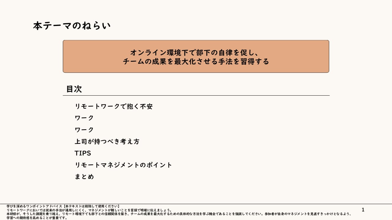 【見えない不安を成果に変える】自律したチームを創る「リモートマネジメント」研修スライド 〜オンライン時代の信頼構築と、成果に直結する関わり方の技術〜
