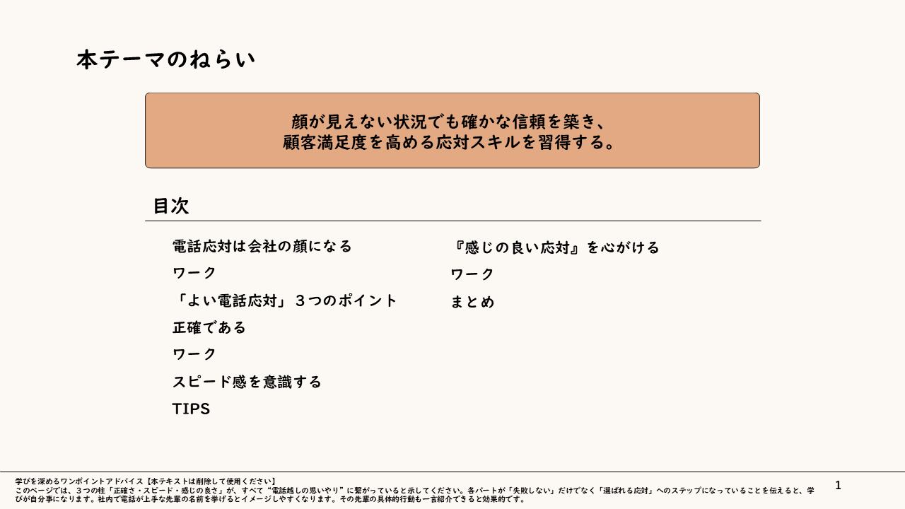 【ねらい】顔が見えない状況でも確かな信頼を築き、顧客満足度を高める応対スキルを習得する。