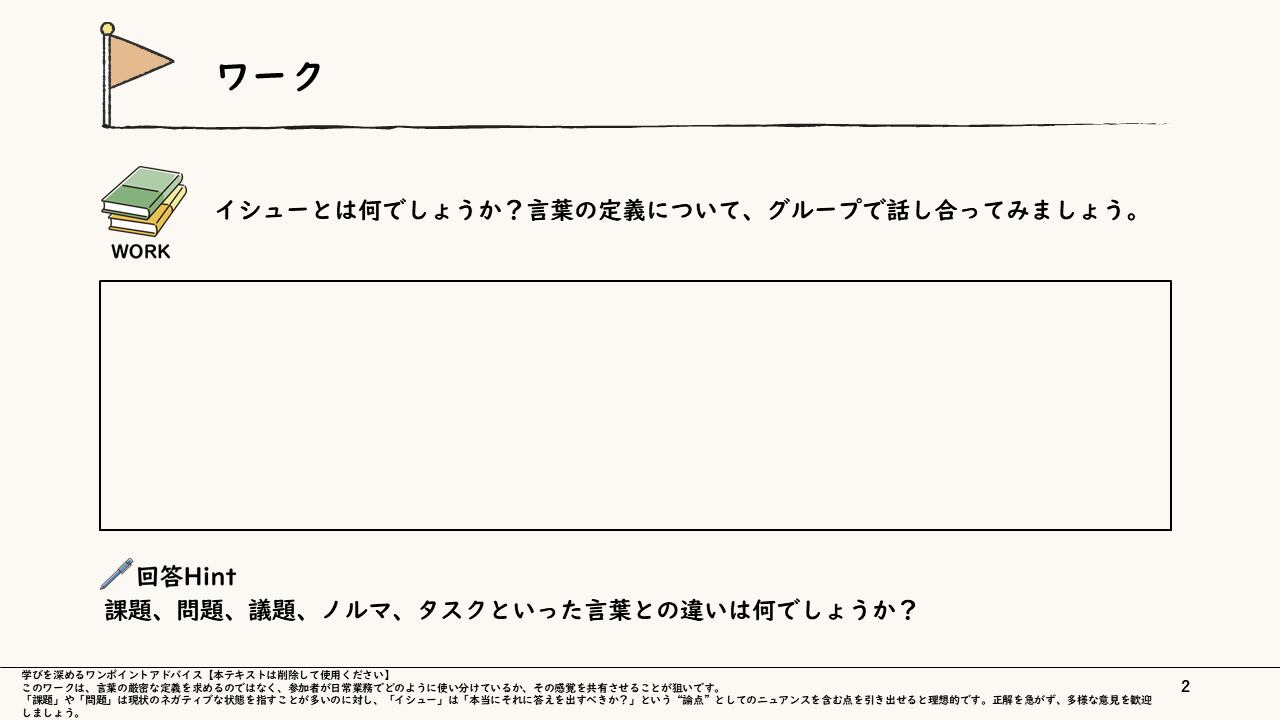【ねらい】解決すべき本質的な問いを定義し、生産性を最大化する思考法を習得する。