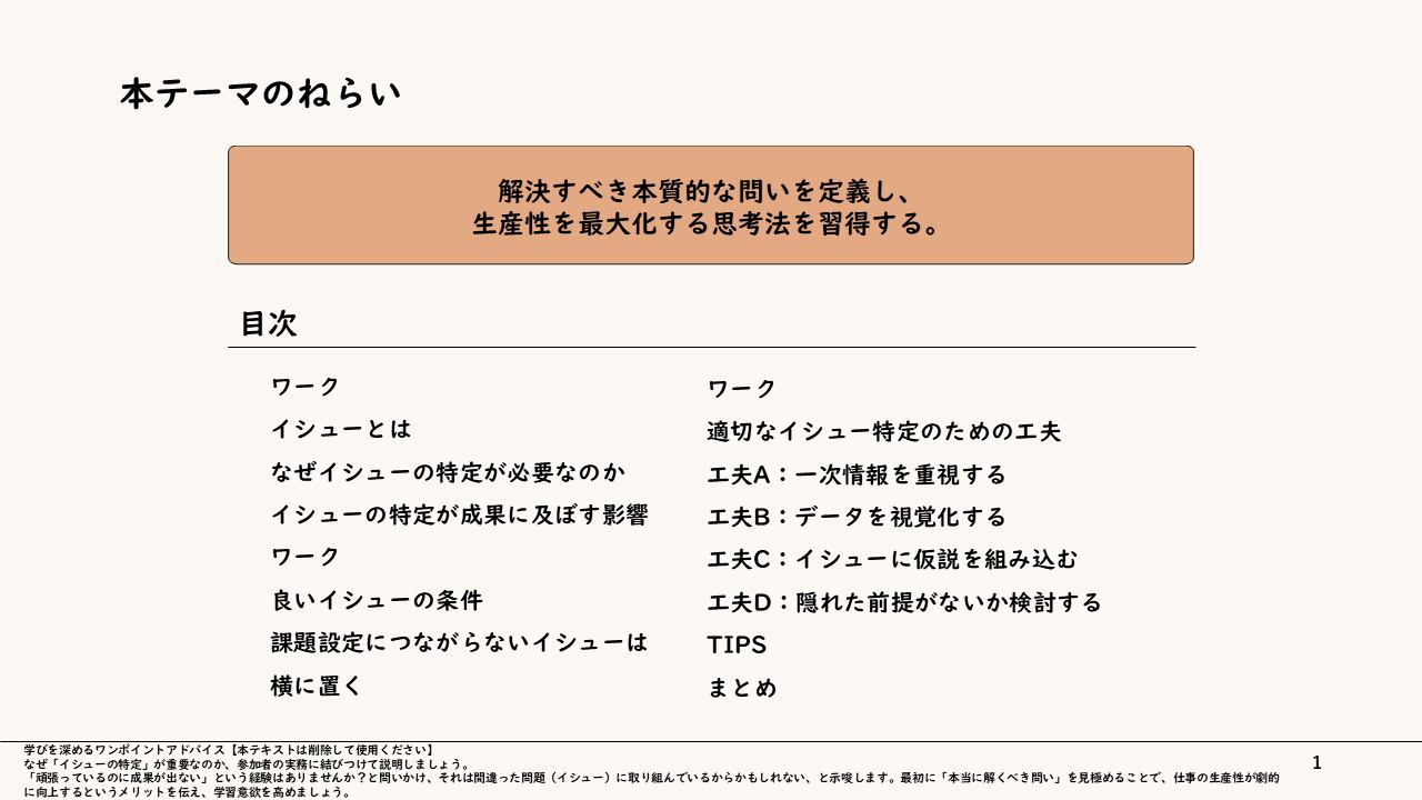 【解くべき問いを見極める】無駄を排し成果を最大化する「イシュー特定」研修スライド 〜「何に答えるべきか」を正しく定め、知的生産の質を劇的に高める思考法〜