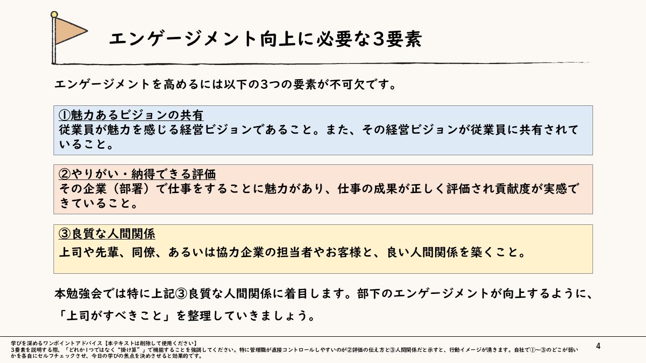 【自走するチームの土台を作る】エンゲージメントを向上させる「対話型マネジメント」研修スライド 〜信頼関係を深化させ、部下の内発的動機を呼び起こす関わり方〜