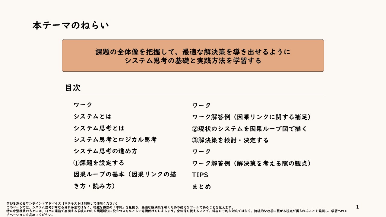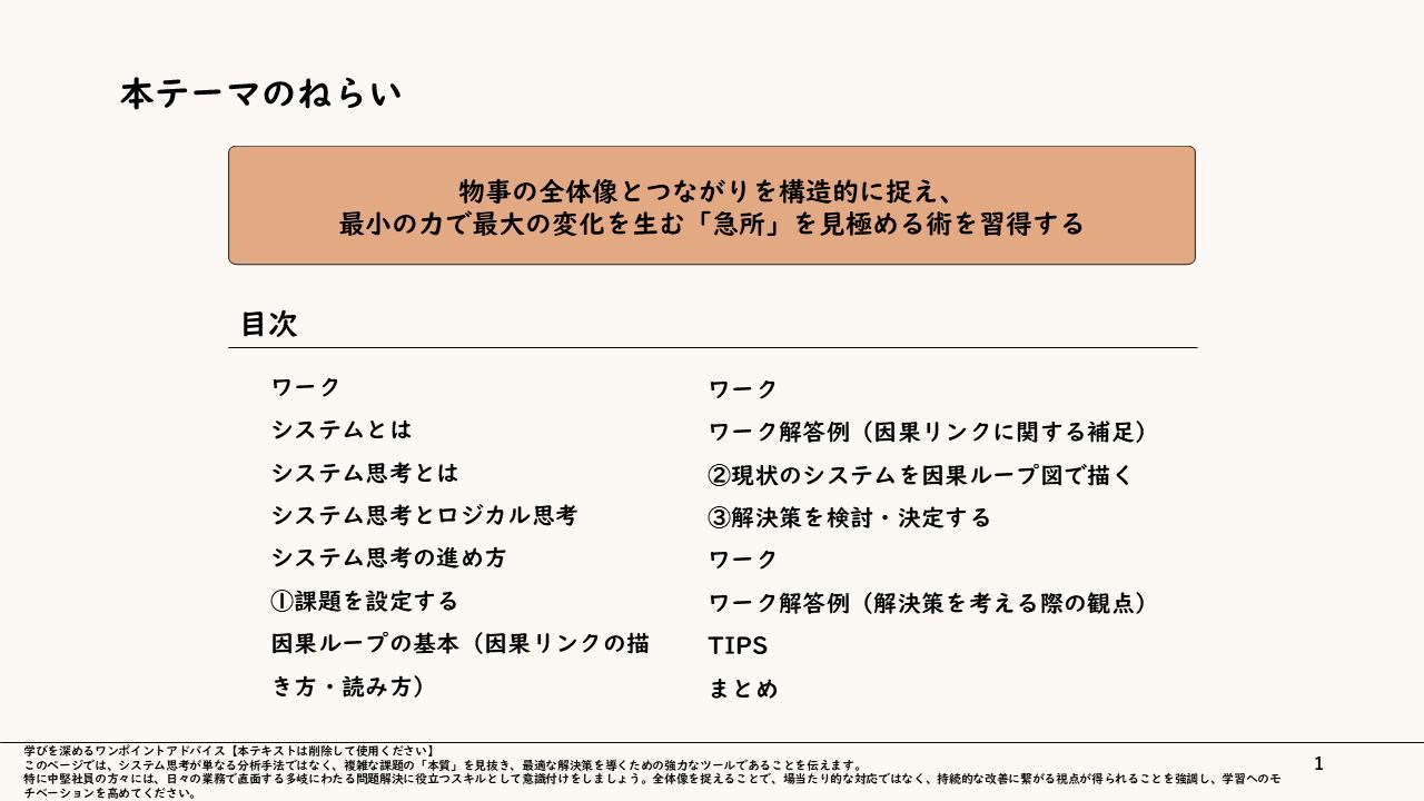 【もぐら叩きから脱却する】複雑な構造を紐解く「システム思考」研修スライド 〜全体像を可視化し、最小の力で最大の変化を生む急所を見極める技術〜