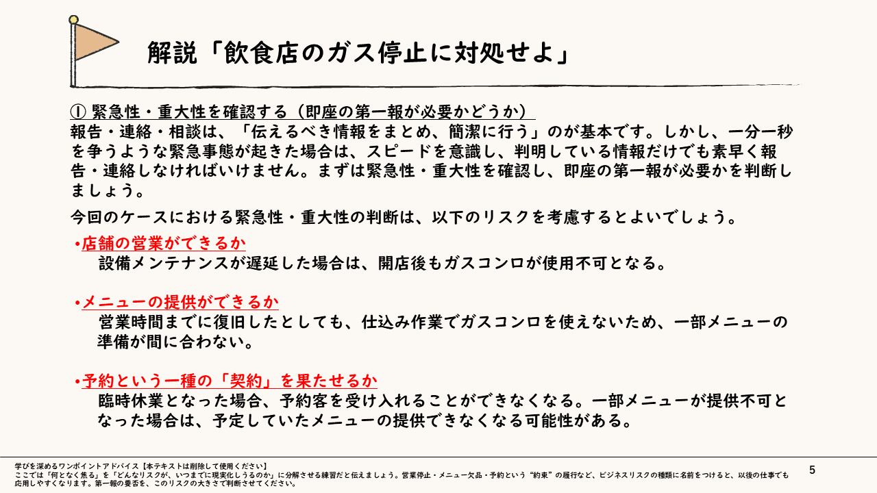 本スライドでは、現場で起こりがちな具体的なケーススタディを通じて、実務のスピード感を損なわないための判断基準や、相手の状況に配慮したアクションの取り方を学びます。伝える「内容」の正確さはもちろん、上司やチームが今何を求めているかを察知し、最適な「タイミング」で発信する技術を習得します。