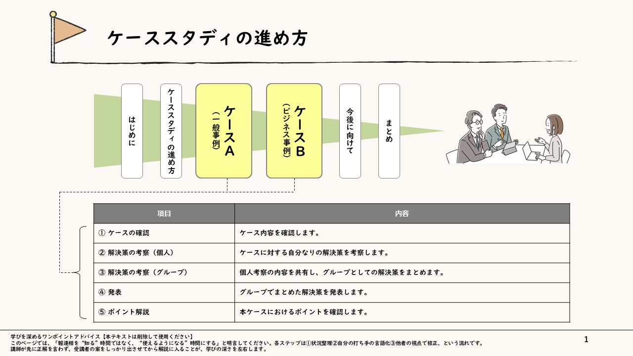 ・形式的なマナー教育ではなく、ケーススタディを通じて「仕事の現場で本当に求められる報連相」を伝えたい研修講師の方