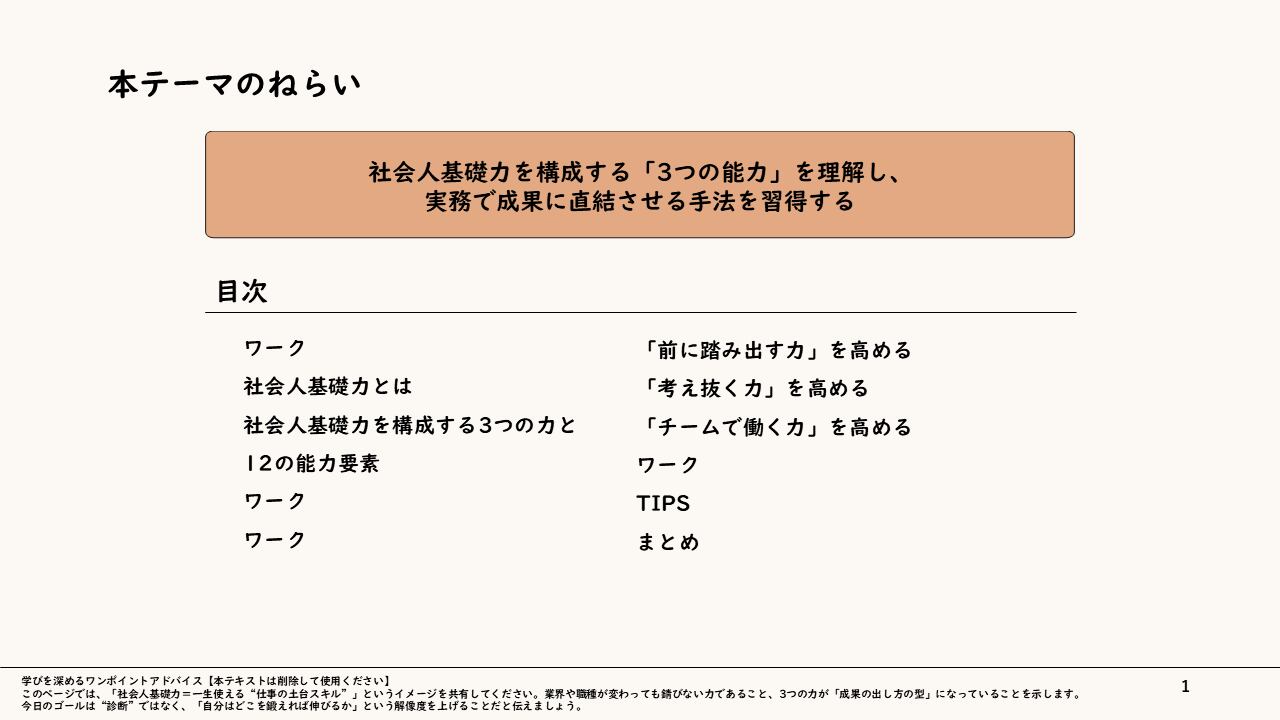 【知識を価値へ変換する土台を創る】現場で真に求められる「社会人基礎力」習得研修スライド 〜踏み出す力、考え抜く力、チームで働く力を、成果に直結させる実践メソッド〜