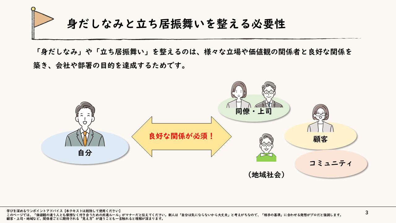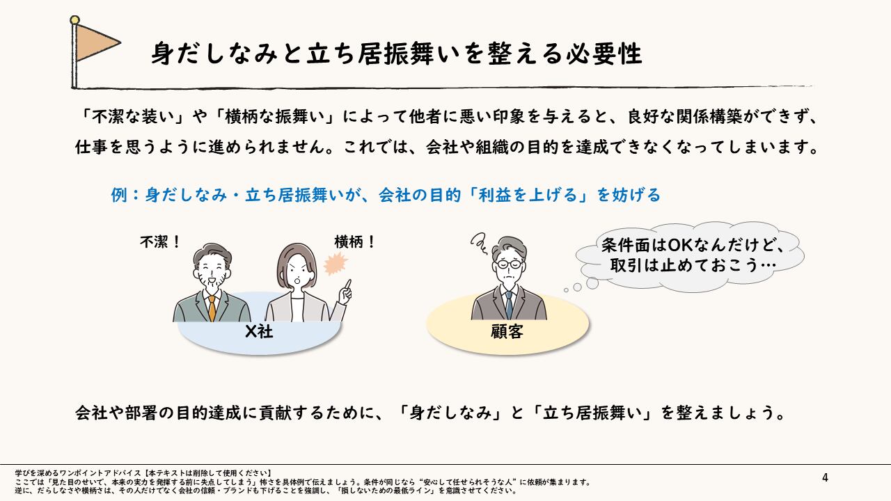 ・新入社員や若手社員に、スキルの前に「信頼されるプロとしての外見・態度」を徹底させたい人事・教育担当者様