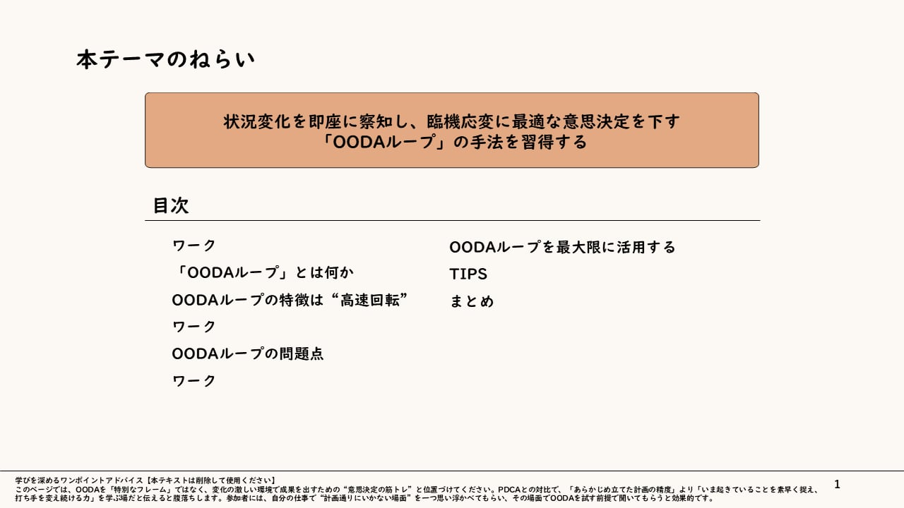 【予測不能な時代を勝ち抜く】自律型ビジネスパーソンのための「OODAループ」研修スライド 〜状況を即座に判断し、先手を取る意思決定メソッド〜