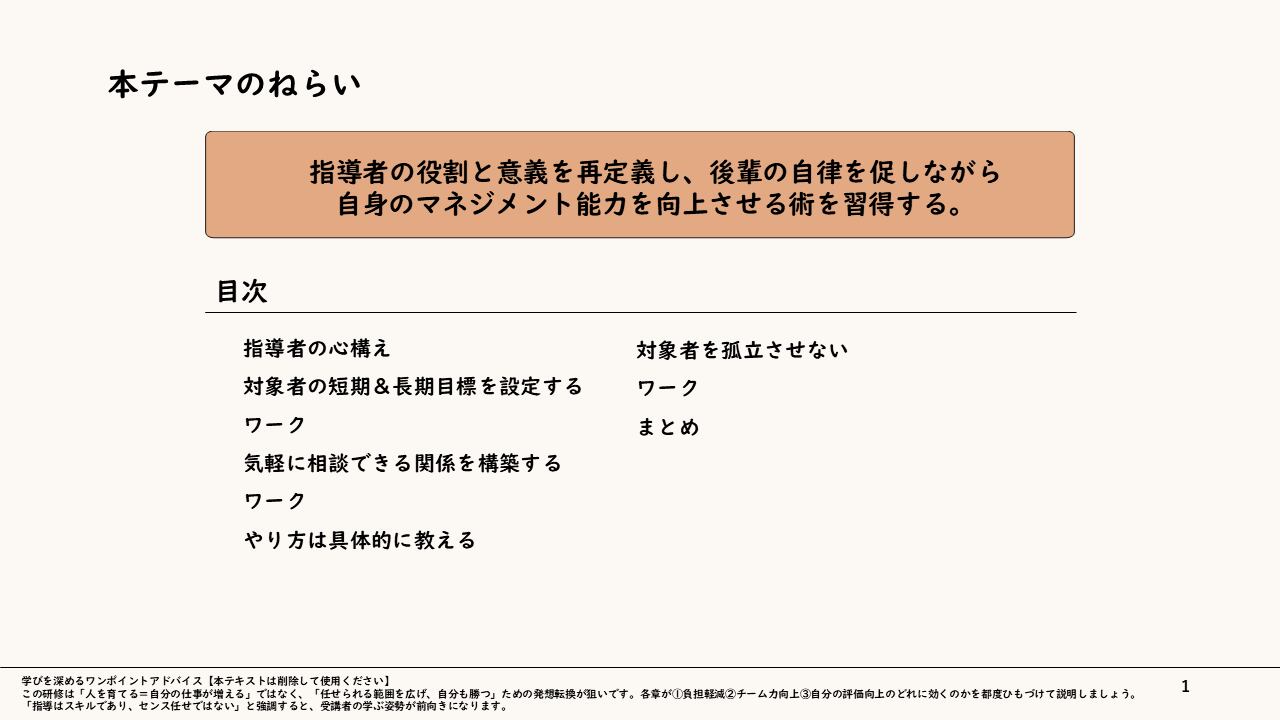 【育成を自身の成長へ転換する】チームの成果を最大化させる「指導者マインド」研修スライド 〜教える苦手意識を払拭し、後輩を戦力化しながら自分も飛躍するマネジメントの極意〜