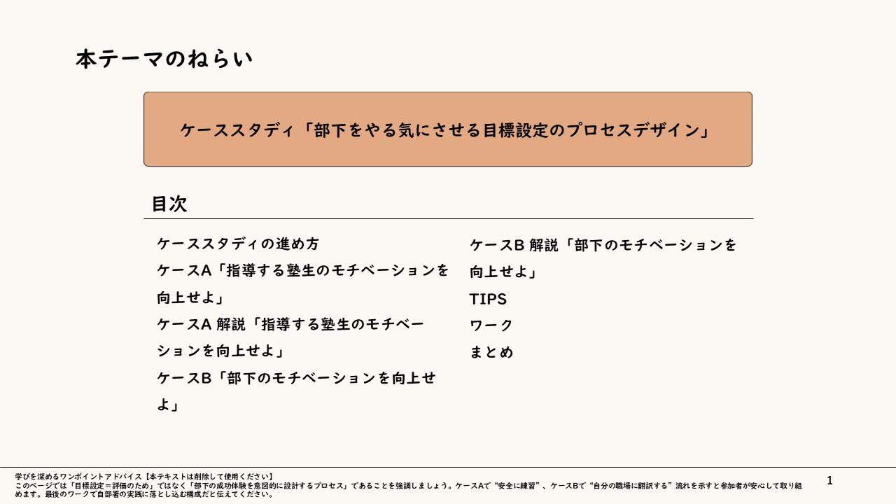 ・ケーススタディを通じて、実践的な目標設定研修を行いたい研修講師の方