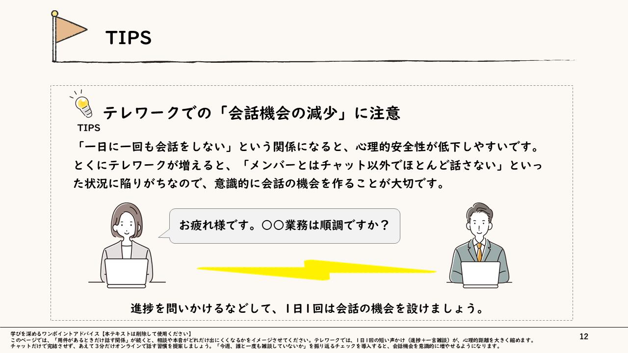 ・抽象的な「心理的安全性」という概念を、会議での問いかけやトラブル時の対応といった具体的な「技術」として指導したい研修講師の方