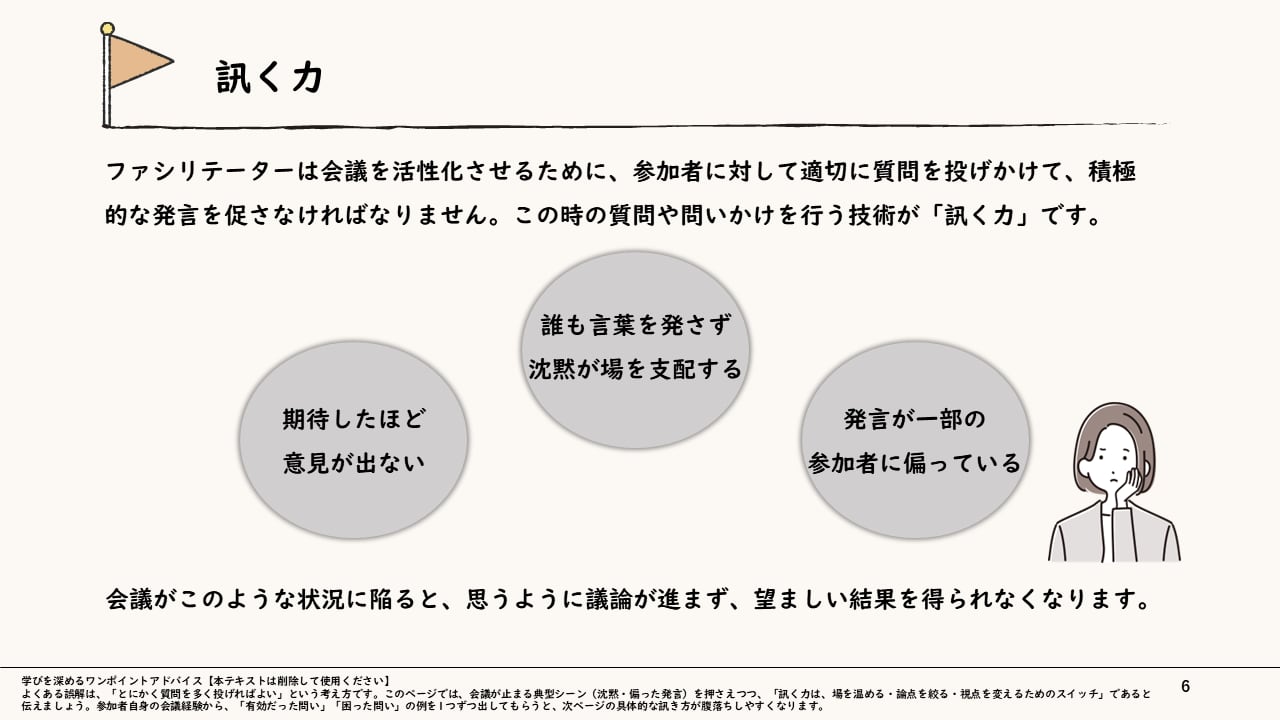 【多様な意見を引き出し、つなげる】ファシリテーター養成「対人関係スキル」研修スライド 〜訊く・聴く・要約/ブリッジで会議の場を促進する〜