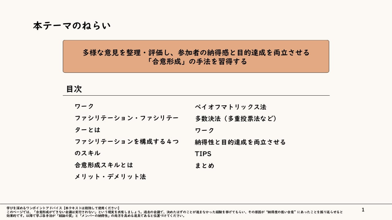 【納得して動ける結論をつくる】ファシリテーター養成「合意形成スキル」研修スライド 〜結論の質と参加メンバーの納得性を両立させる決め方の技術〜