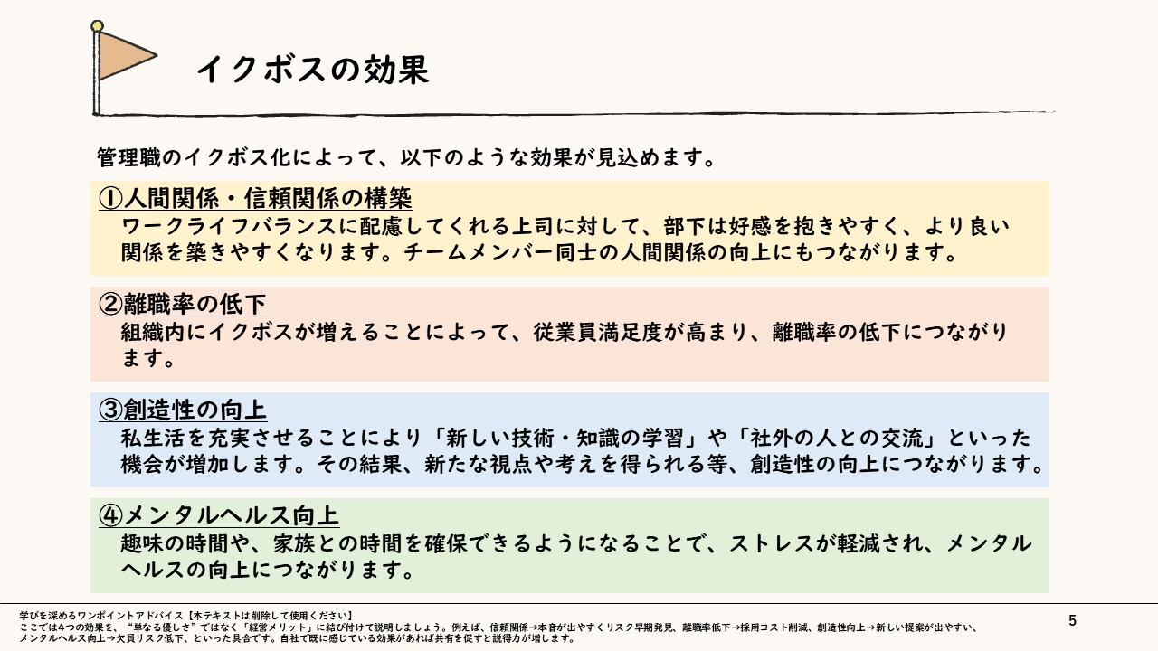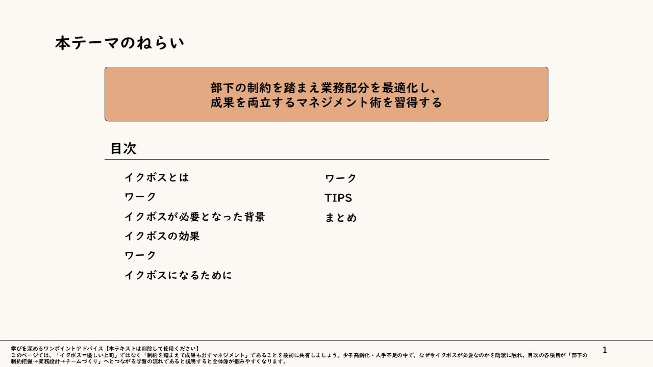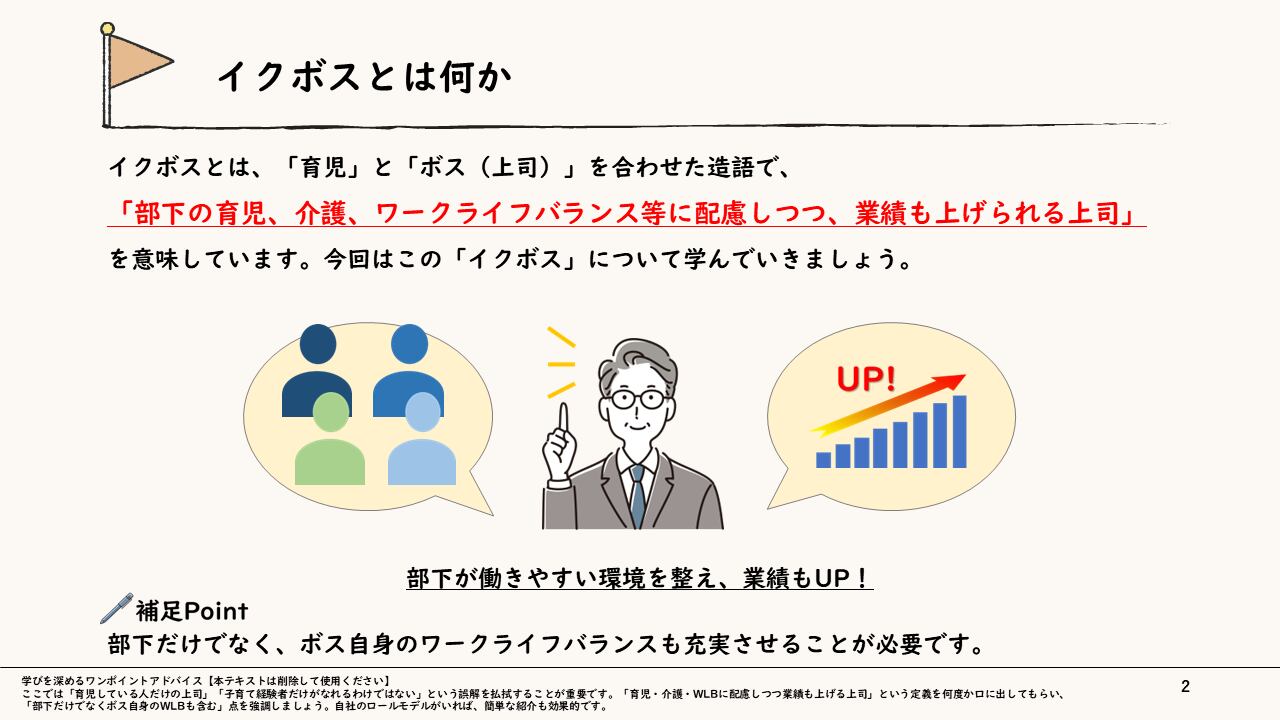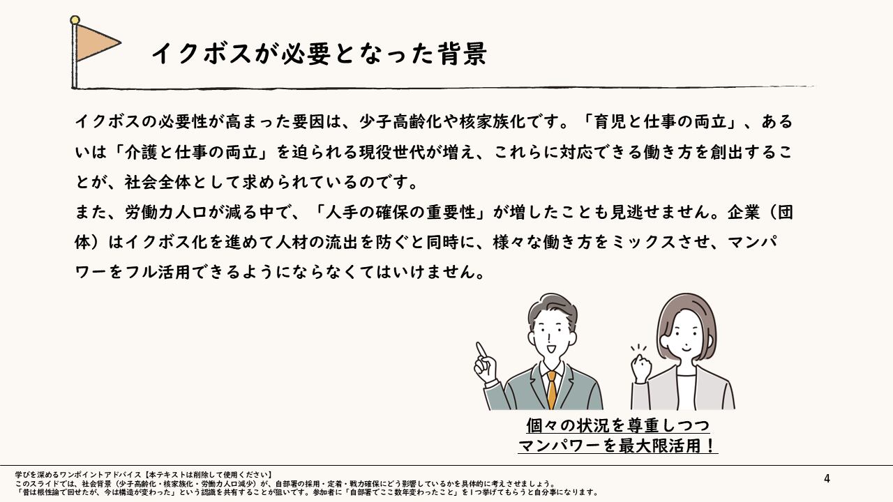 【制約を力に変える】あなたも目指せる「イクボス」研修スライド 〜多様な事情を踏まえ、チームの成果とWLBを両立させる〜