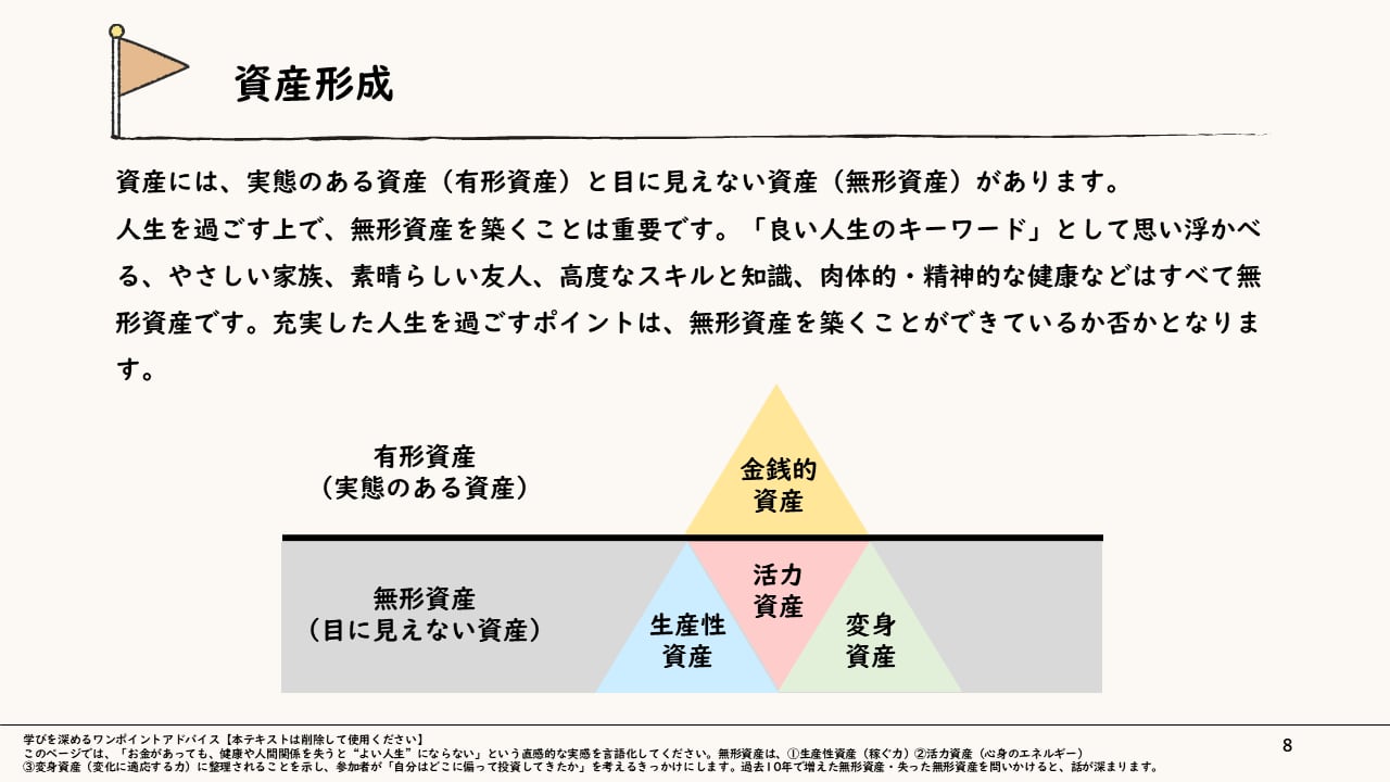 【ねらい】人生100年時代を前提に人生設計を刷新し、自律的に資産を築く戦略思考を習得する。